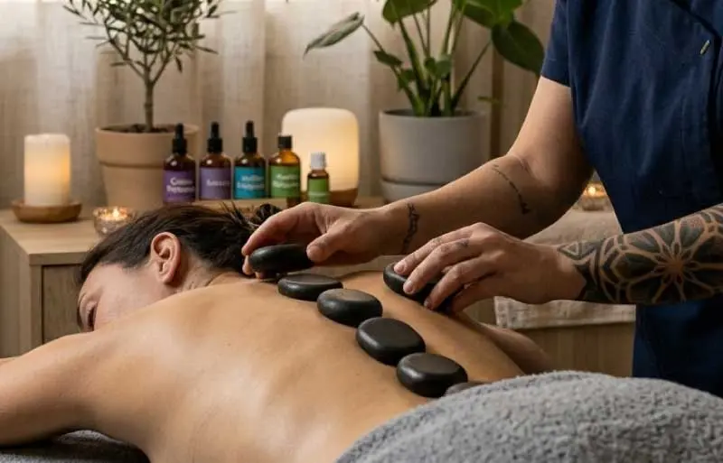 Masaje con piedras calientes.